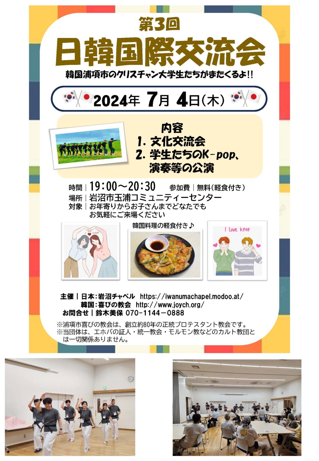 | ハングル教室 | 14:00 | 初級、中級、会話 (随時募集) |
